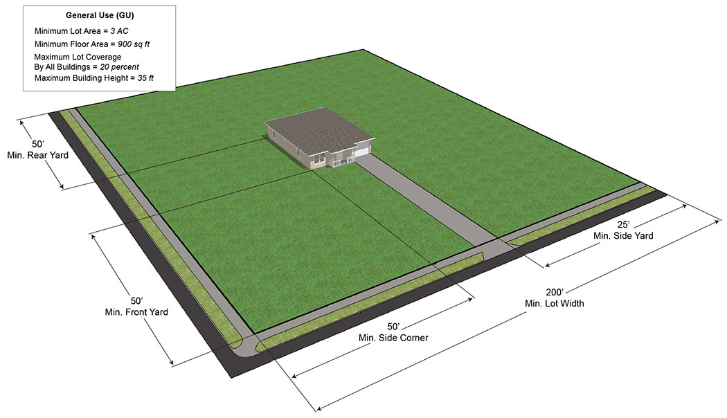 | RMU-200 | 50 feet | 50 feet | None, use building setback above |
