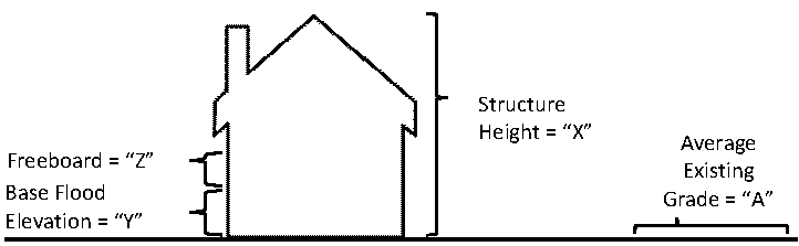 Building Height (in a special flood hazard area using the CRMC exclusion) Building Height = X − (C − A)
