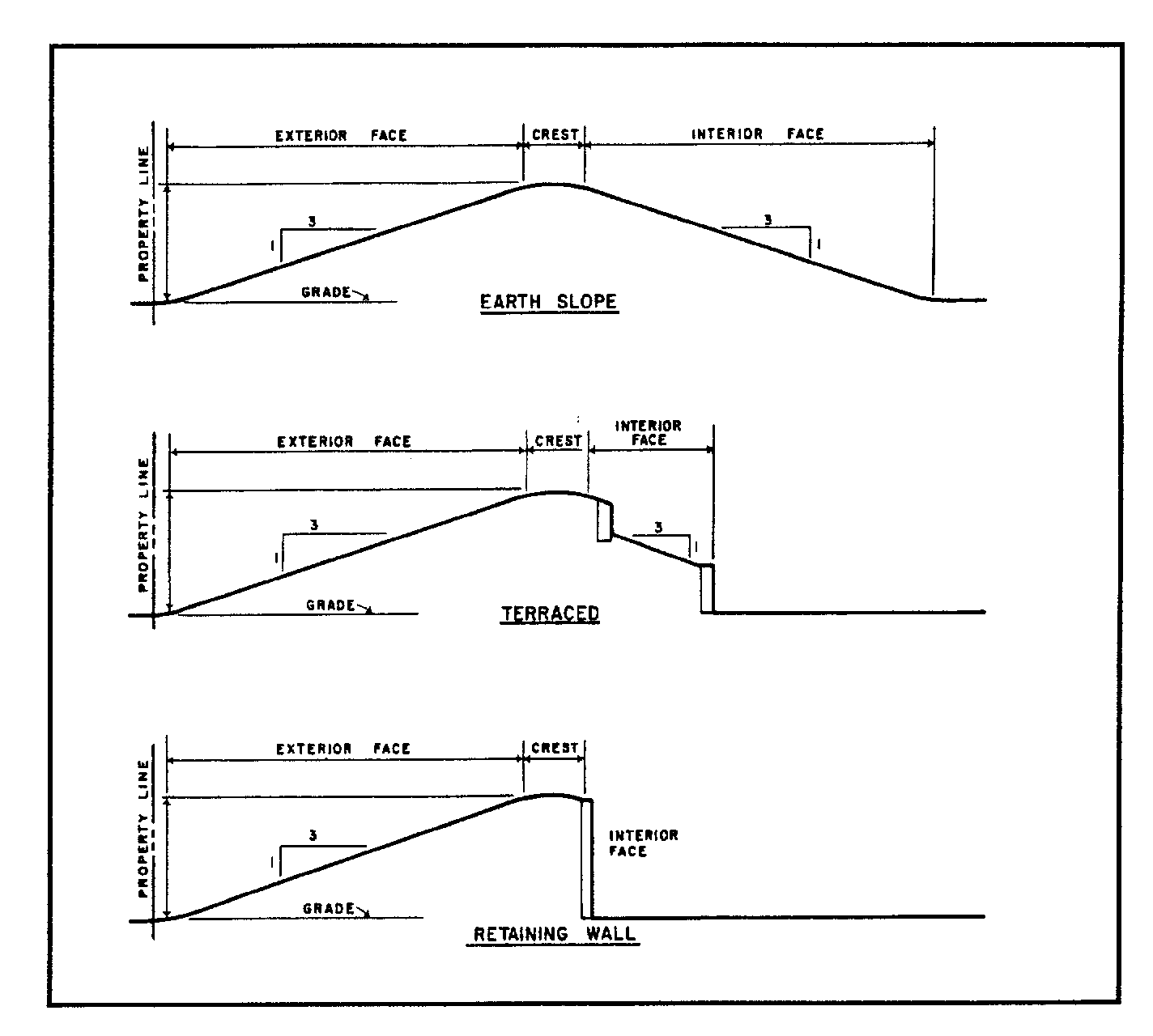 * Would require berm to be part of a terraced or retaining wall screen structure in a ten-foot-wide or less lawn panel. See Transition Berm Details illustration in of this article.