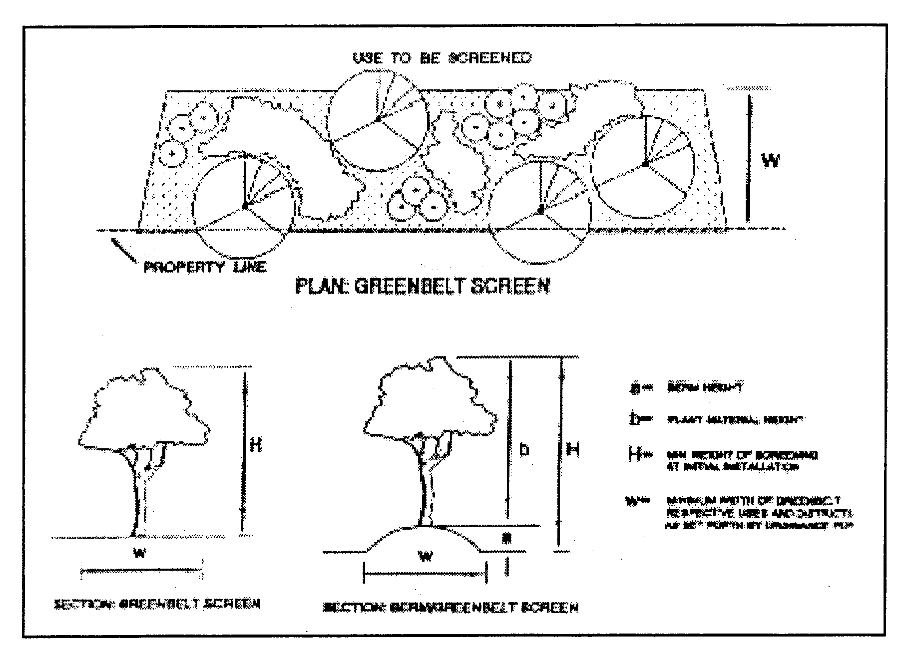 Dense foliage, which ought to be preserved, and which can augment an effective planting screen that exists on the property where a screening device is required, and which would be diminished or destroyed by the erection of a masonry screen wall structure or landscaped earth berm, or