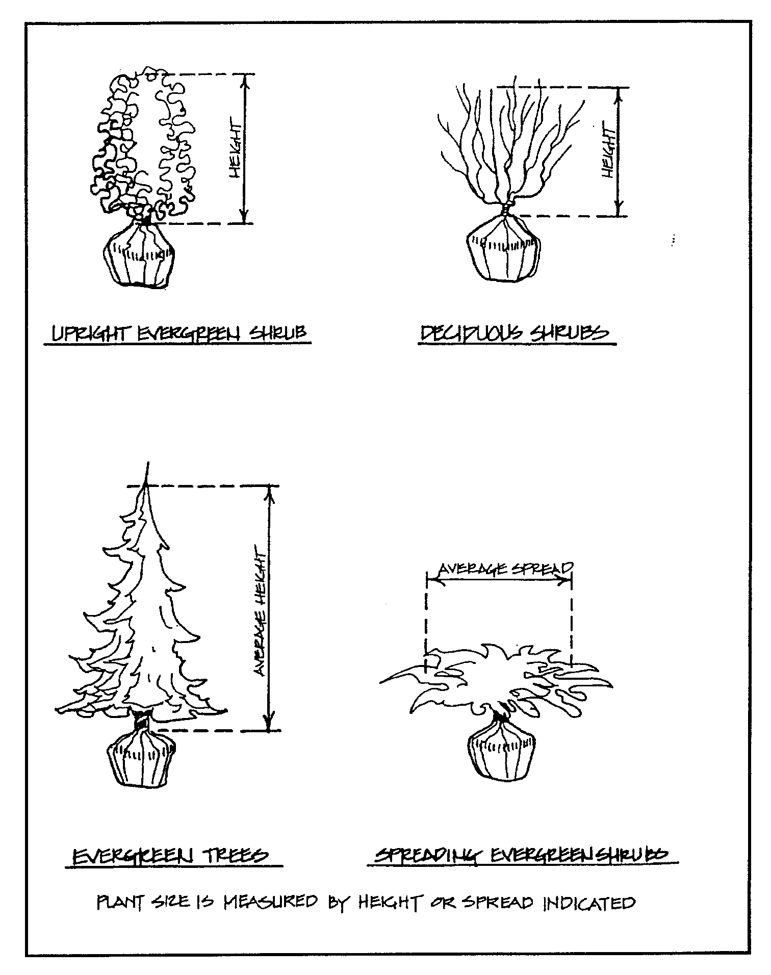 The size of plant material (both starting and ultimate) is sufficient to ensure adequate maturity and optimum screening effect by the proposed plant materials.