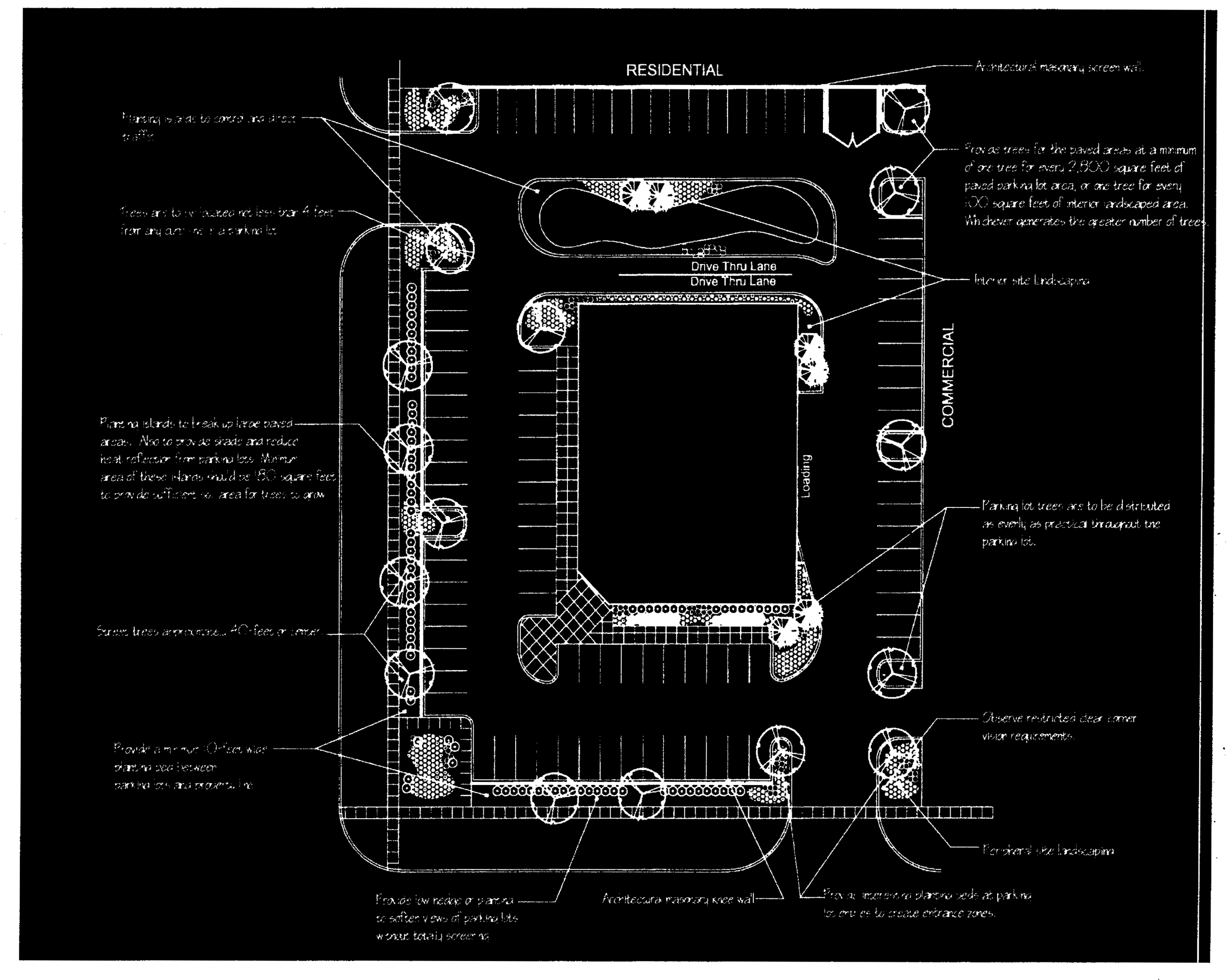 Landscaping for aesthetic purposes shall be placed throughout the property and shall be placed in compliance with the following guidelines: