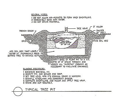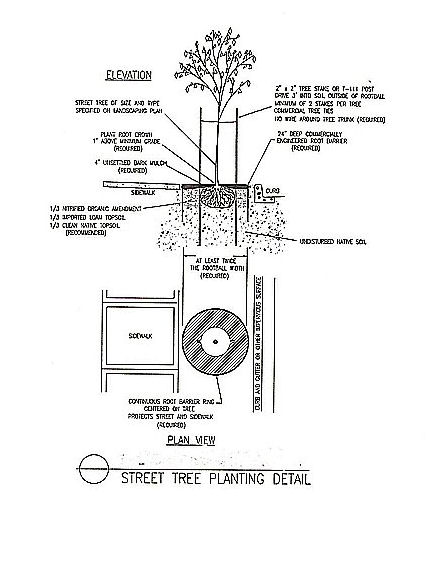 19.13-1 Minimum Planting Area. In order to provide sufficient growing area for planted trees, the following minimum criteria must be observed unless otherwise approved by the arborist: