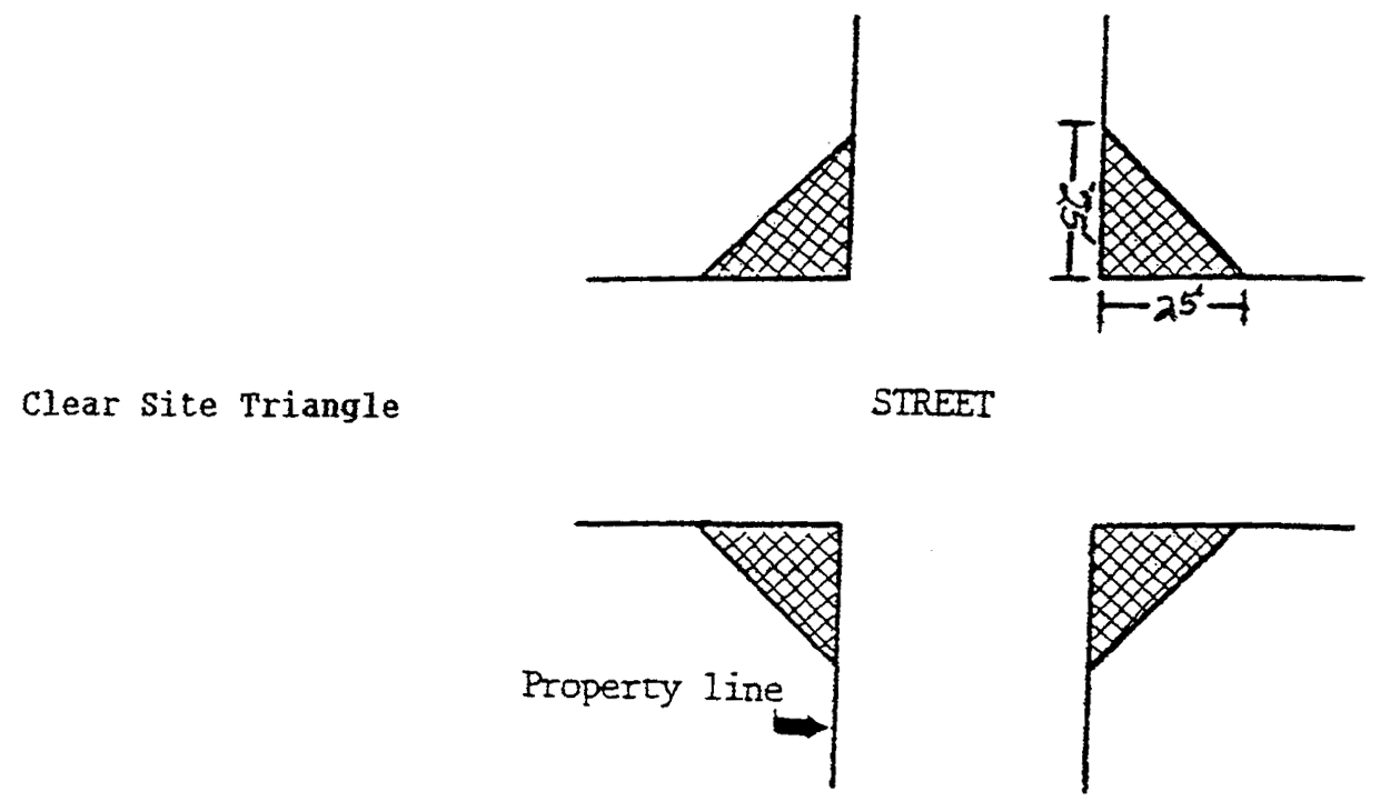 CLEAR-SIGHT TRIANGLE: A triangular area of unobstructed vision at street intersections, alleys and at curb cut entrances and exits. A full definition is found in the City Zoning Code.