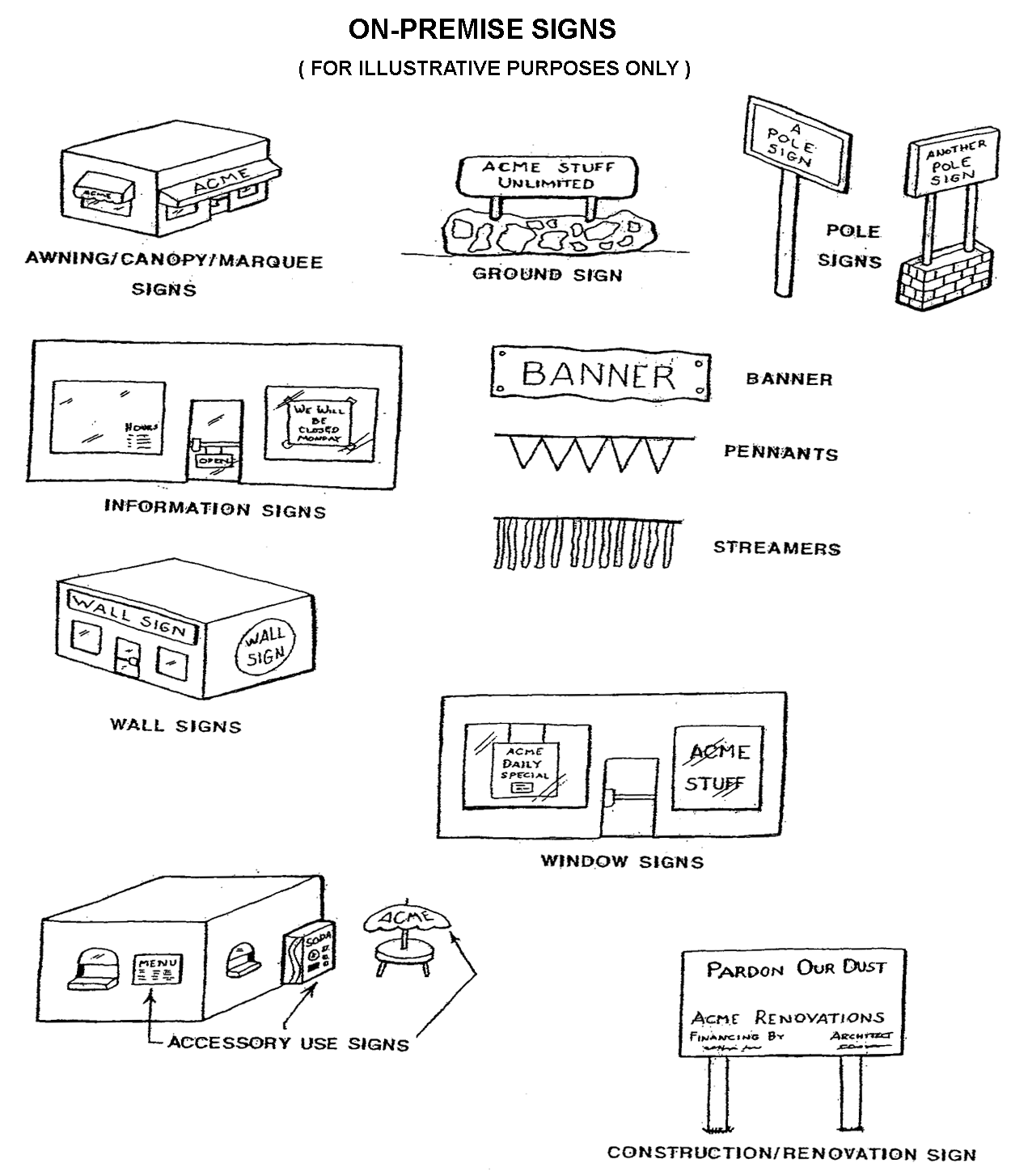ON-PREMISES SIGN: Sign which advertises or directs attention to a business, product, service or activity which is available on the premises where the sign is located.