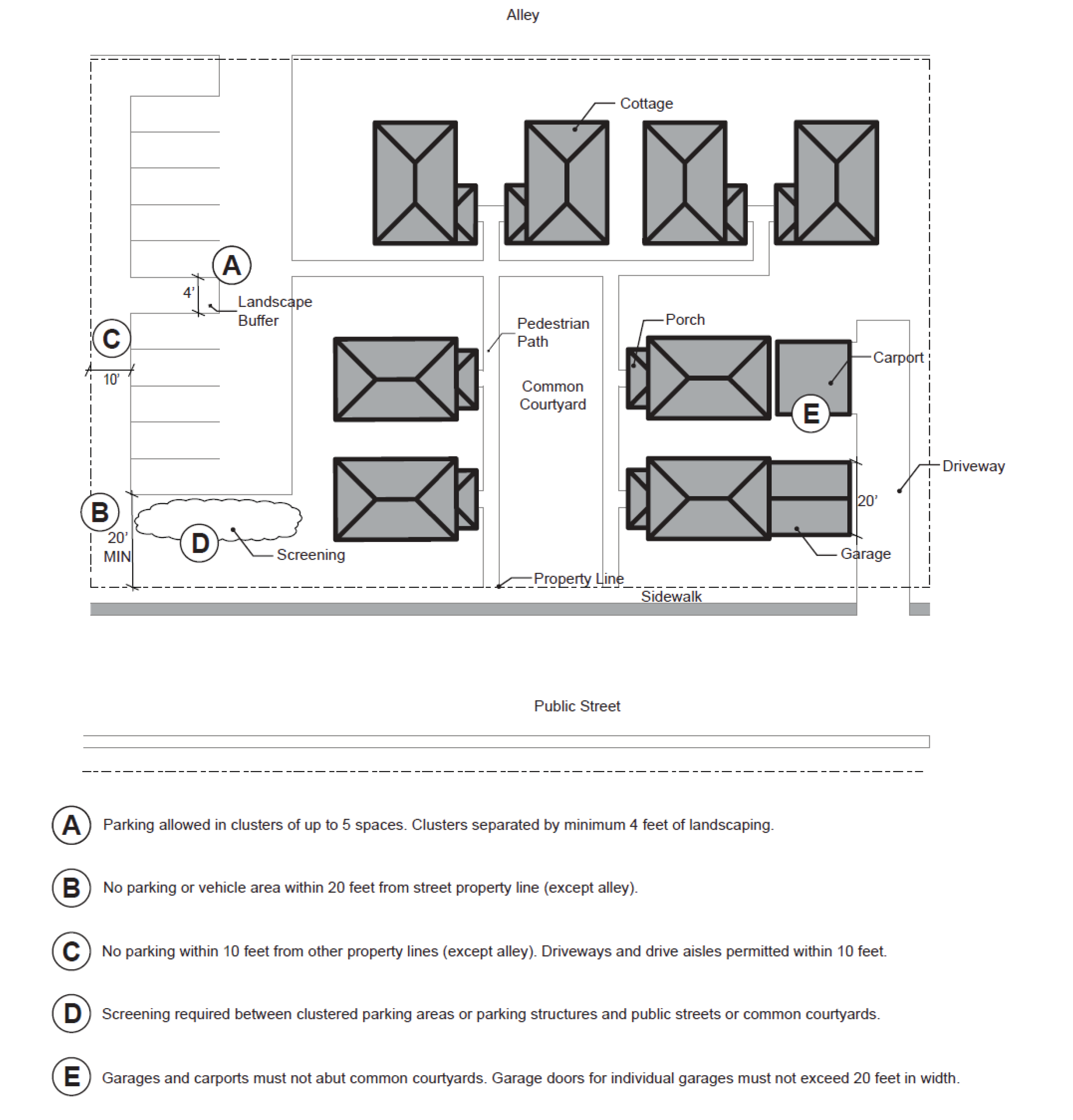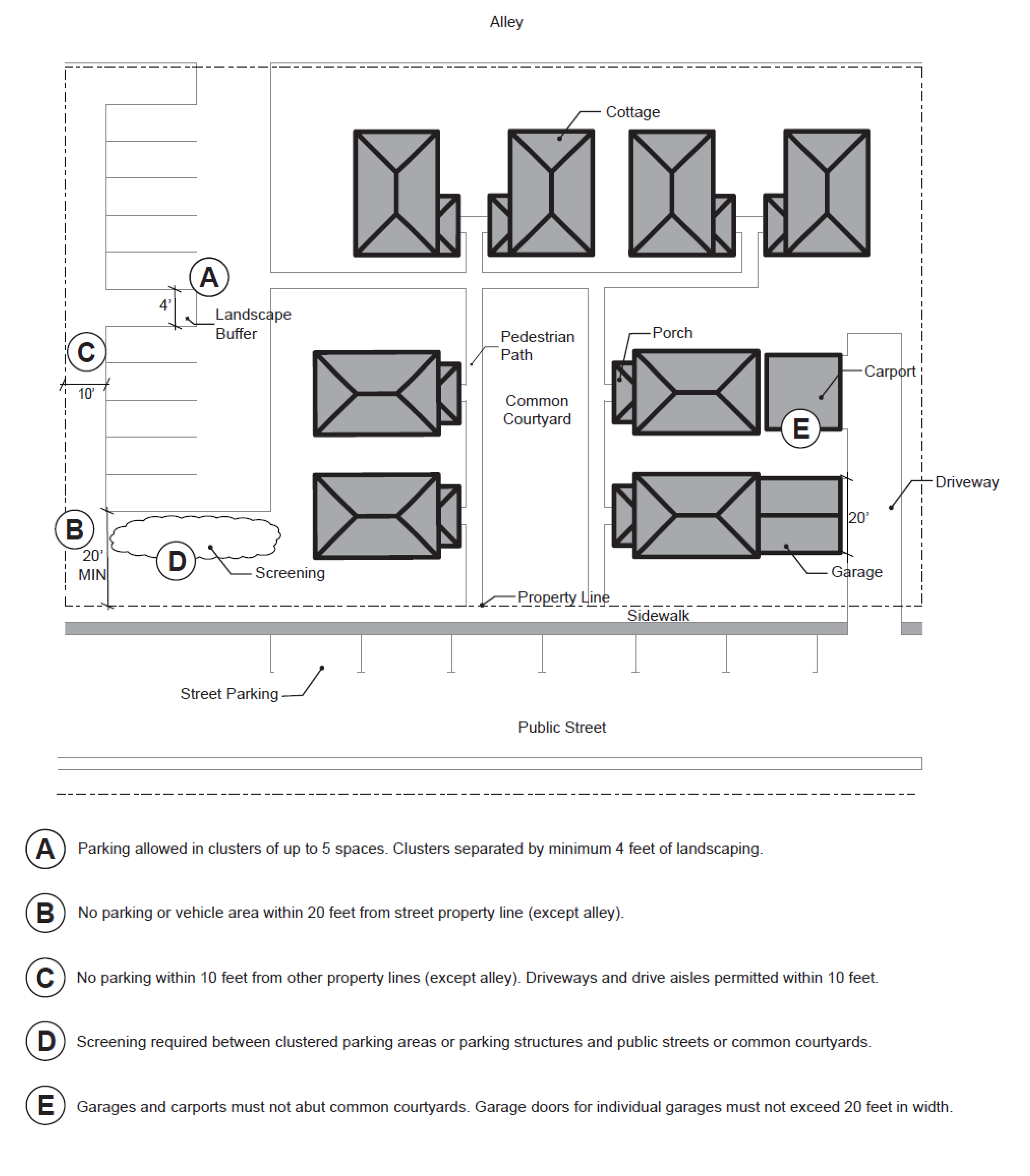 Parking Location. When provided, parking must be provided within garages or parking lots as follows: