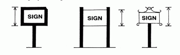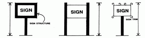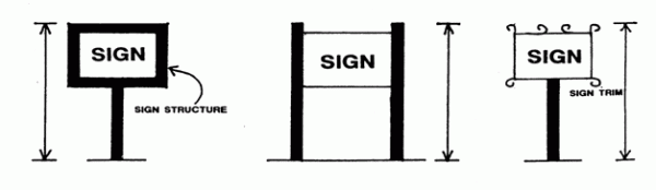 Height: No greater than fourteen feet high from the grade to the highest point of the sign, including the sign face, structure and any projection, decoration, or trim of the sign face or structure.