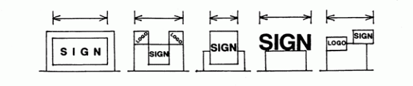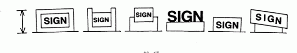 Variation in sign profile including use of asymmetrical and curvilinear shapes and planes, and irregular height of sign elements;