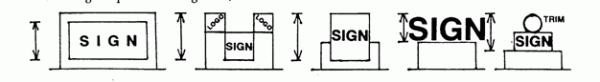Main Sign: No greater than eight feet high from lowest point to the highest point of the sign face, including any projection, decoration, and individual letters, cabinet or trim of the sign face. All letters or numbers must be four feet high or less. Height above grade shall be no higher than the height of the sign band.