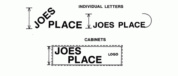 Height of Copy: No higher than two inches, except 20 percent of the sign face area may have copy up to five inches. Map size is not restricted by this subsection.