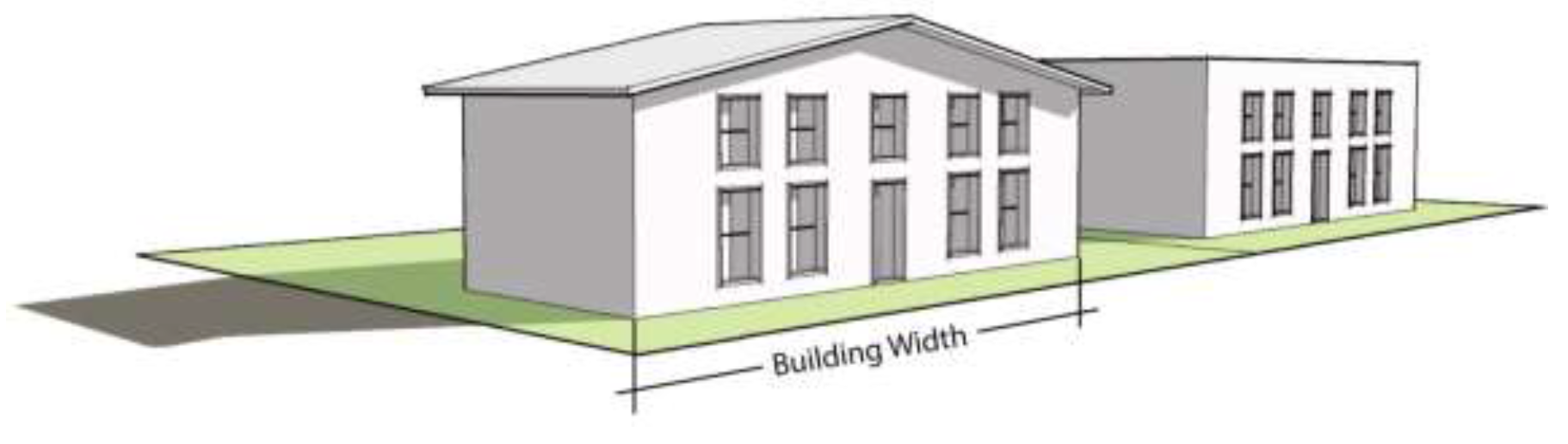 Two-part commercial block style means a building of two stories or greater in height that has a flat roof and is characterized by a horizontal division of the building façade into two distinct zones. These zones may be similar in design but shall be clearly separated from one another. The ground floor level of the building shall contain fenestration equal to 75 percent of the width of the front façade of the building.