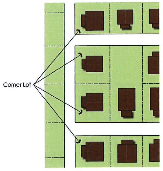 Yard, corner side, means an open-space area of a corner lot between the exterior side lot line and the required exterior side building setback line, extending between the front building setback line and the rear building setback line. Side corner yards have the same regulations and restrictions as front yards.