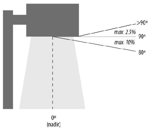 Light-producing elements must be concealed or shielded with cutoffs so that no more than two and one-half (2.5) percent of the light emitted directly from the lamp or indirectly from the fixture is projected at an angle of more than ninety (90) degrees above nadir and no more than ten (10) percent of the light emitted directly from the lamp or indirectly from the fixture is projected at an angle of more than eighty (80) degrees above nadir.