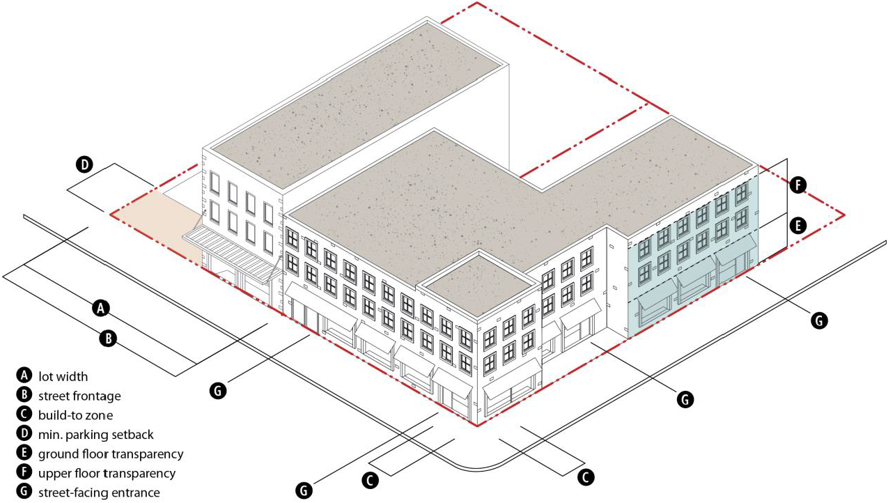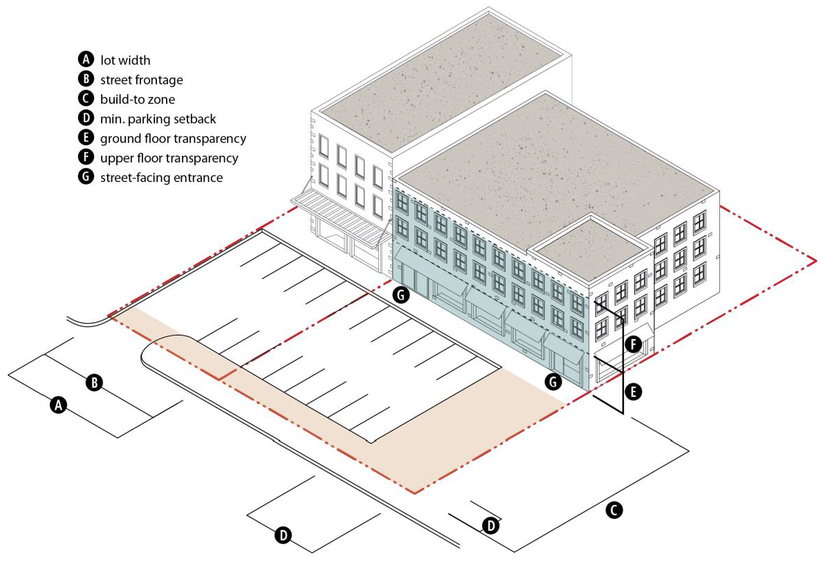 Figure 10-2: Parking Prohibited between Building and Street Right-of-Way (-P Character