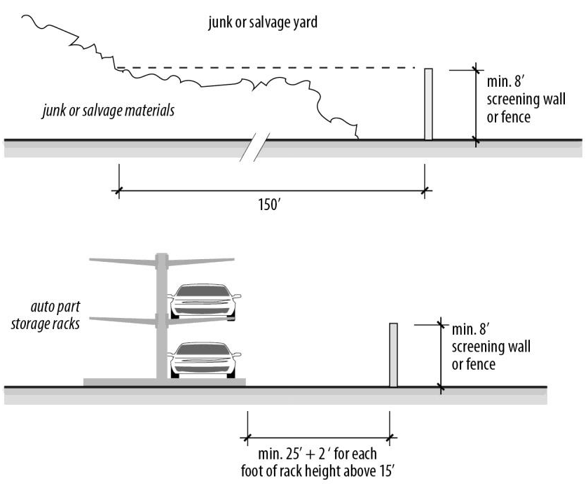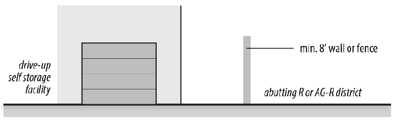 Whenever any wholesale, distribution and storage use is located on a lot abutting an R- or AG-R-zoned lot, a screening wall or fence must be provided along the common lot line in accordance with the F1 screening fence or wall standards of Subsection 65.070C.
