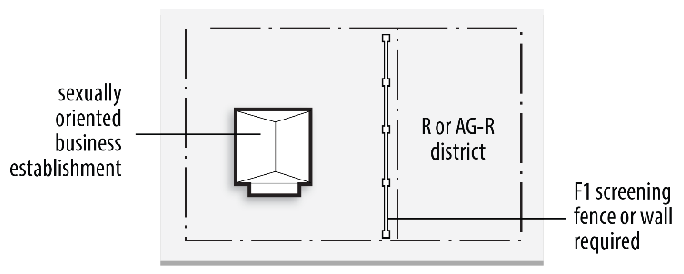 When a sexually oriented business establishment is located on a lot abutting an R- or AG-R-zoned lot, a screening wall or fence must be provided along the common lot line in accordance with the F1 screening fence or wall standards of Subsection 65.070C.