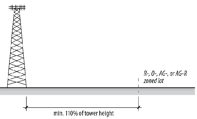 Figure 40-16: Tower Setback from R, O, AG, or AG-R districts