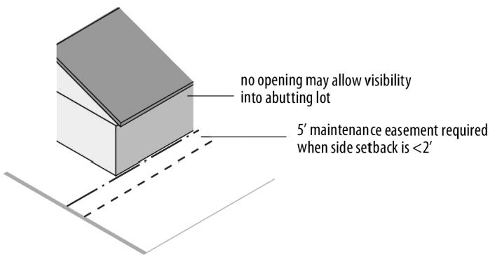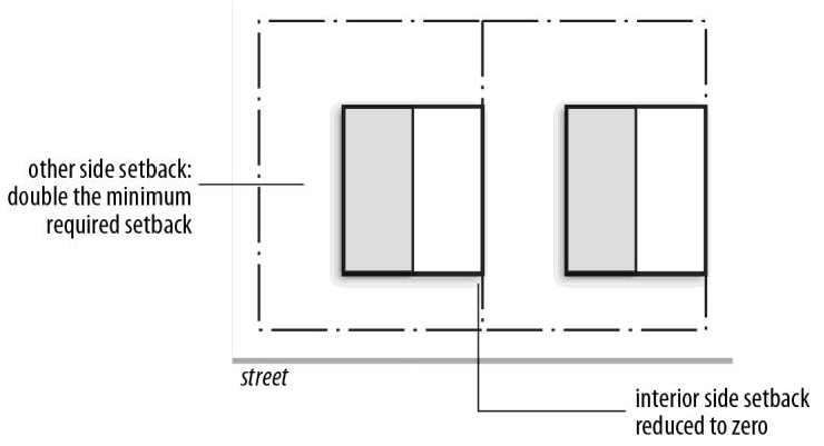 Side setbacks. No side building setback is required for common or abutting walls. Otherwise, the minimum side setback requirements of the subject zoning district apply.