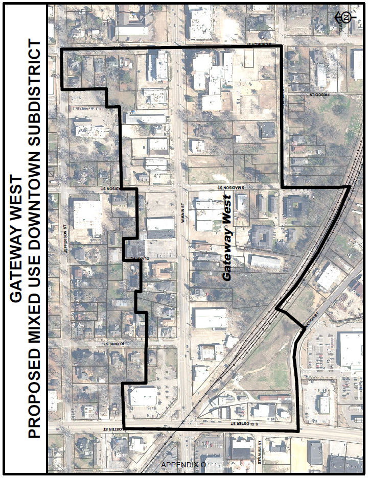 Gateway West Sub-district: Entry corridor from historic Crosstown to the downtown center supporting diverse social experiences, support services, and retail establishments;