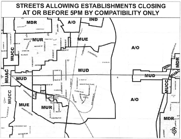 Prohibit land uses that have adverse impacts on the Mixed Use Downtown Overlay District and, through their incompatibility with proposed uses identified in the Downtown Tupelo Master Plan, deter new development;