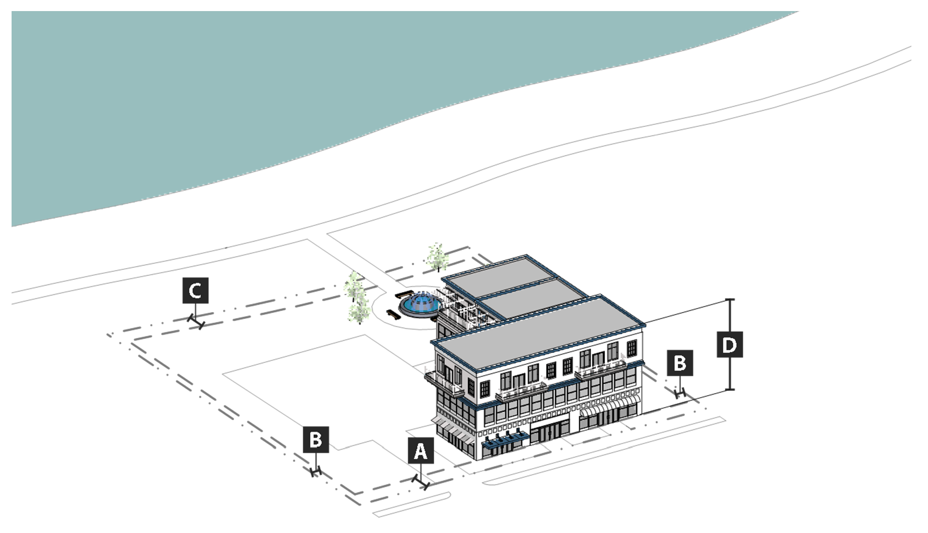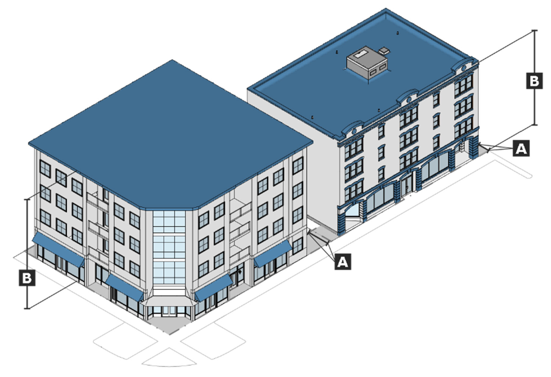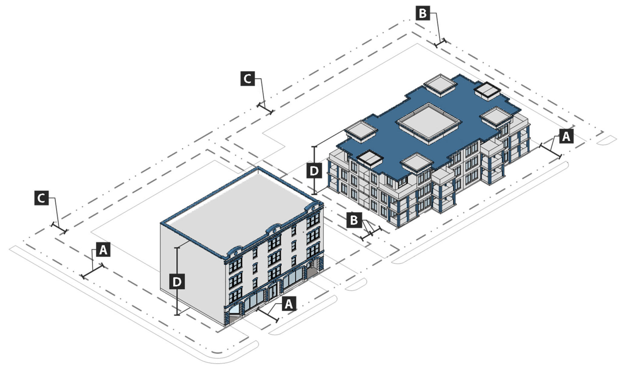 [3] To the maximum extent practicable, buildings shall define the street edge and the distinction between the public domain of the street and the private space of individual lots. To this end, buildings should avoid substantial variations in setback alignment along the street frontage on each block face.