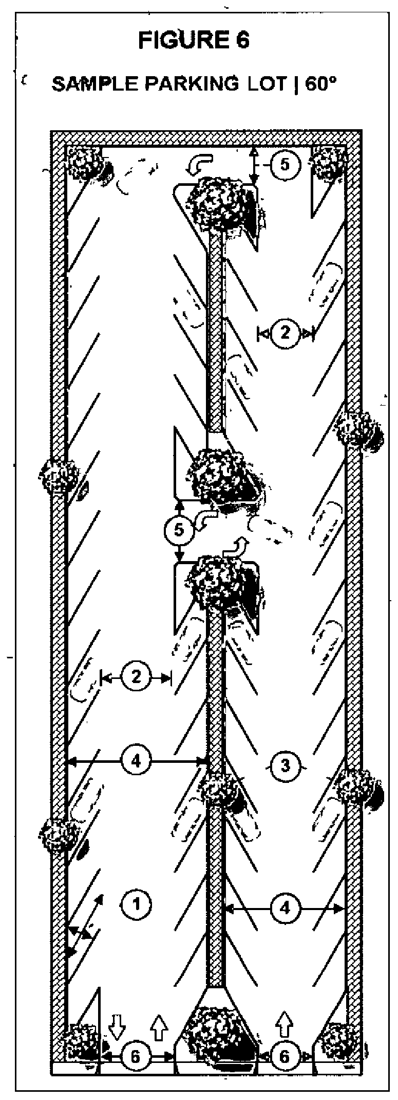 Tree wells: Every sixth (6th) stall, twenty (20) feet; two-way - twenty-four (24) feet