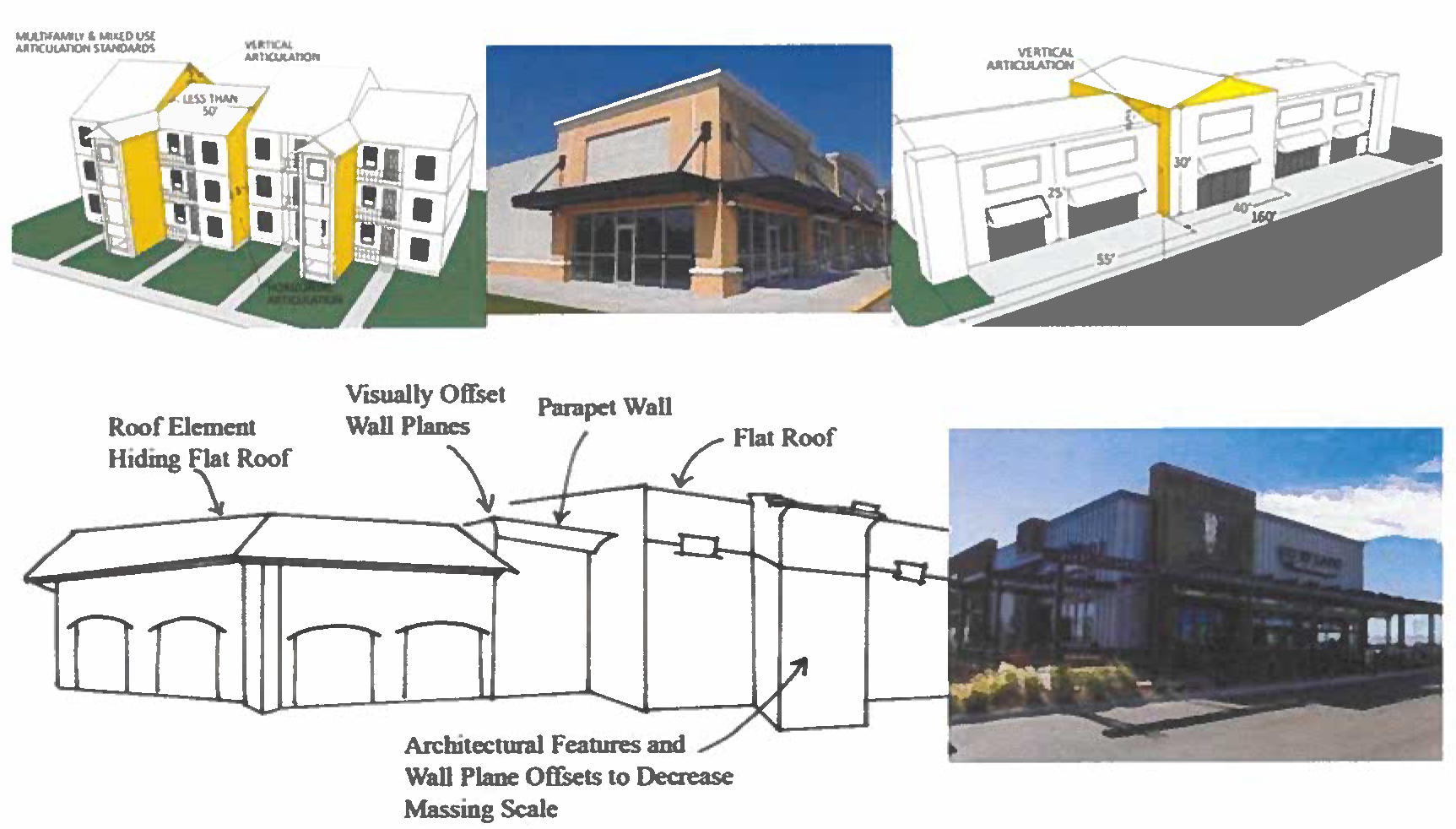 These guidelines address the visual image of all uses within commercial and industrial developments. Building envelopes that are well proportioned and aesthetically interesting on all visible sides are encouraged.