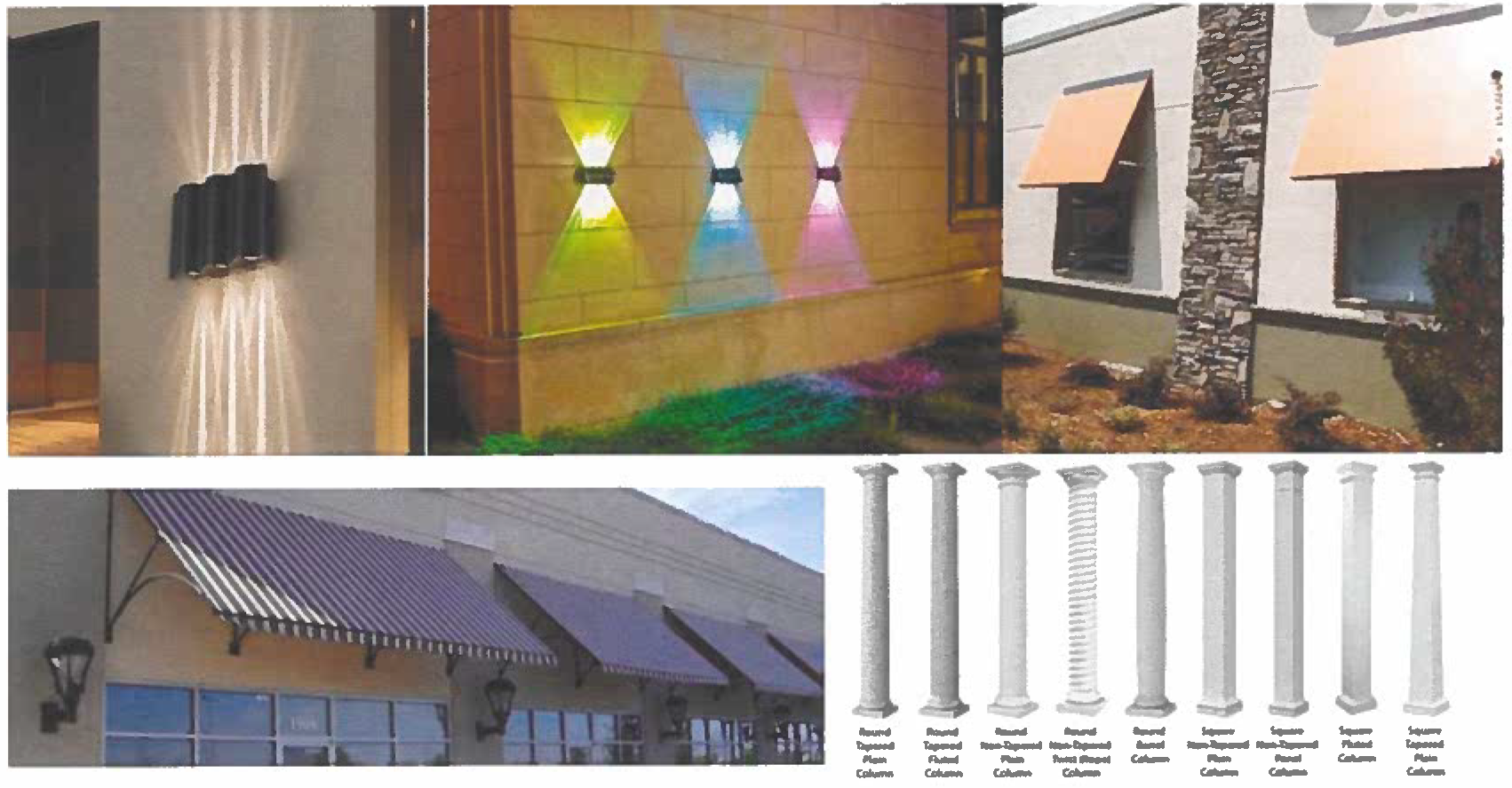 Decorative lighting, i.e. lighting that provides color or depth to the building. This is not just lighting fixtures.