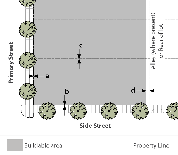 [1] Primary and Side Street Setbacks shall be landscaped and screened per Sec. 8119-1.8.7(b)(5).