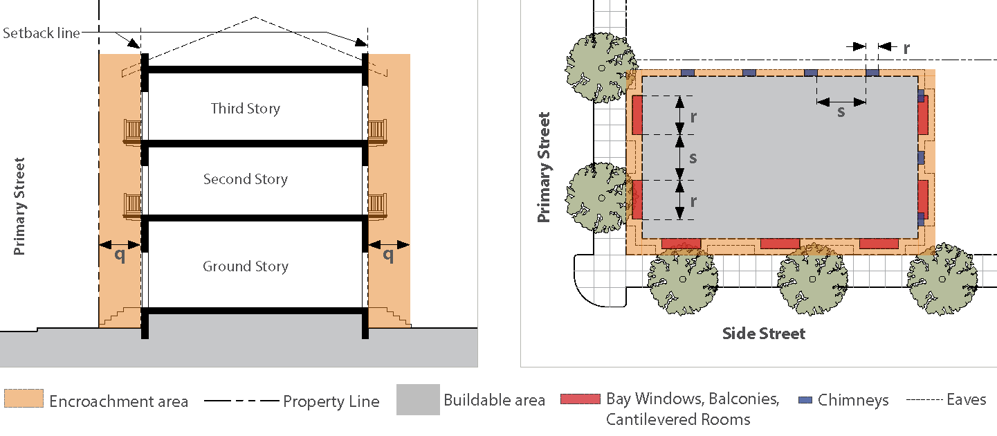 Sec. 8119-1.3 Zoning Standards. This section defines basic development standards for each zone, such as: Building Placement, Building Profile, Building Frontage, Parking and Utility Placement, and Building Encroachment.