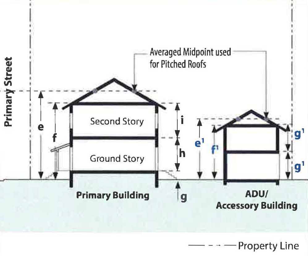 Standards: For parcels that abut L.A. Avenue, use L.A. Avenue as the "primary street" for the purpose of establishing setback, frontage, and other standards. However, for parcels that abut L.A. Avenue and are located north of Violeta Street, use Violeta Street as the "primary street" for the purpose of setting setback, frontage, and other standards due to topographic constraints along L. A. Avenue.