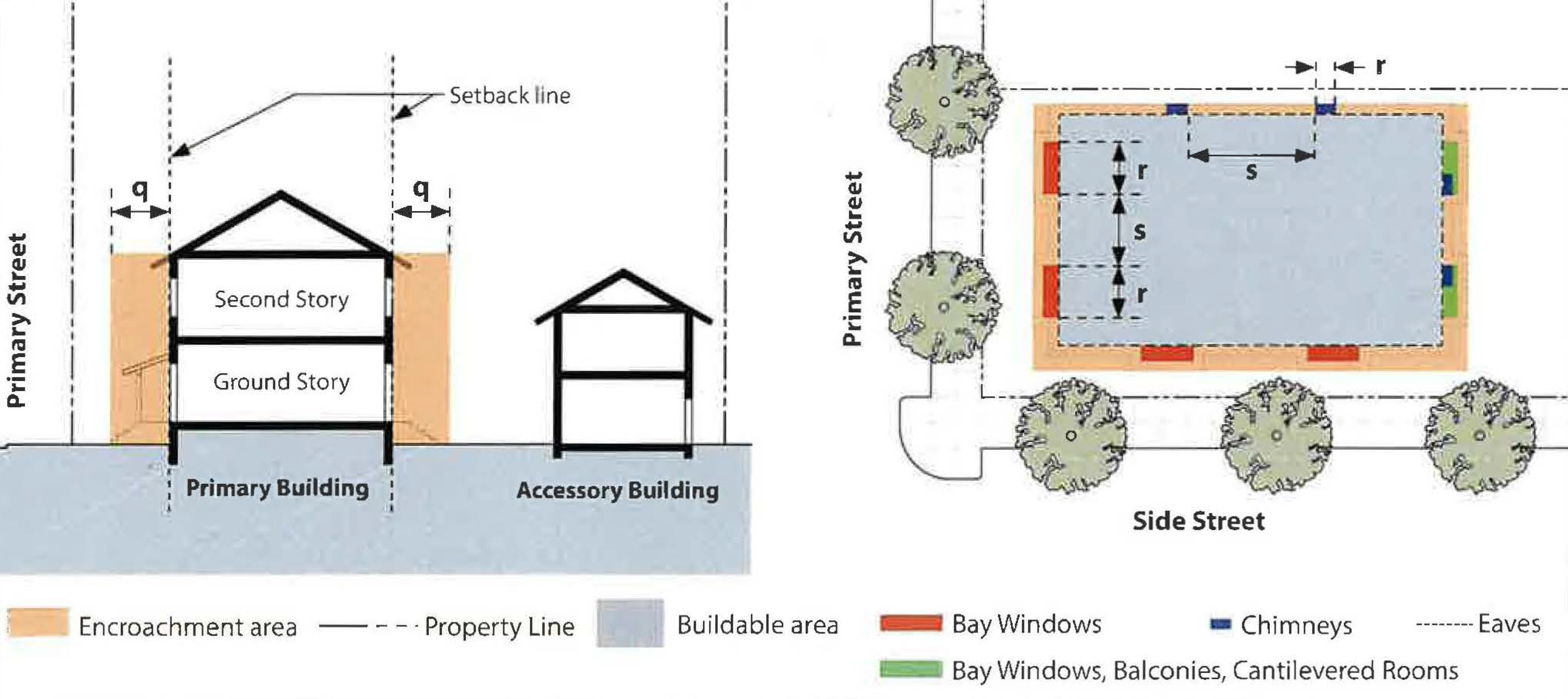 Historic Saticoy Train Depot: Subsections (a) and (b) above do not apply to the Train Depot. For this lot, the "primary street" standards may be used for the side of lot facing the railroad, and parking may be located along Azahar Street or within a side setback. For other standards that apply to the Train Depot, see Appendix C.