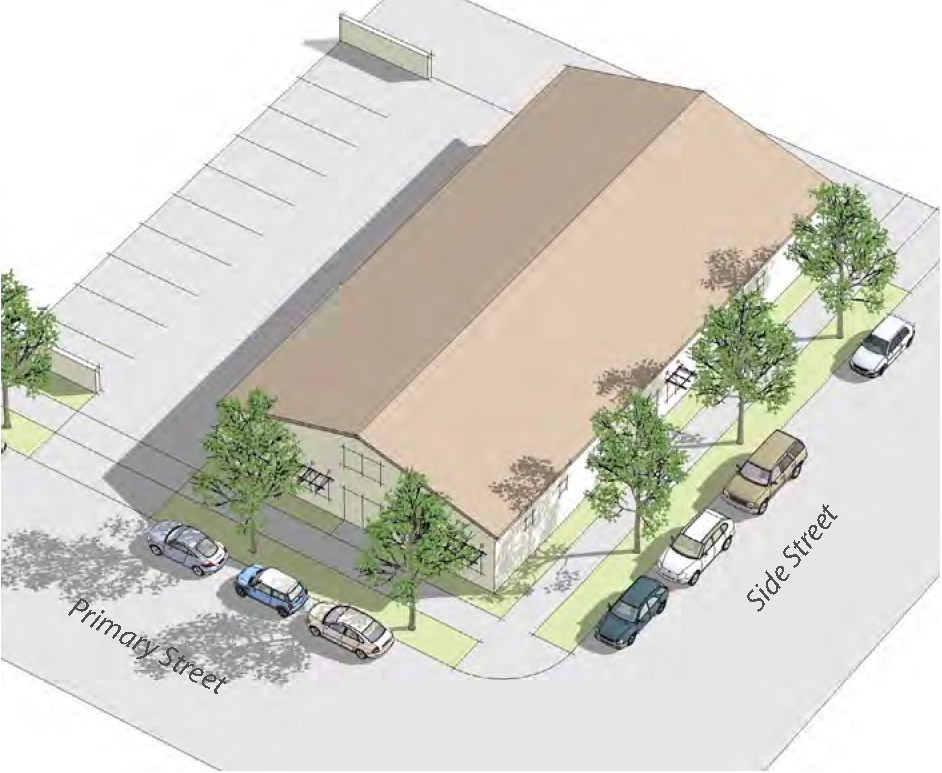 Joint Parking Agreements: Access easements can be utilized for a reciprocal or joint parking agreement between two (2) adjoining property owners, allowing for a shared use of vehicular parking areas at the rear of contiguous commercial parcels. These agreements do not relieve a developer from providing the minimum number of parking spaces for the use, but they can provide more efficient parking lots (i.e., provide more parking) and can minimize the number of entrances into the parking area. For a definition of Joint Parking Agreements, see Chapter 7 Definitions in the Saticoy Area Plan.