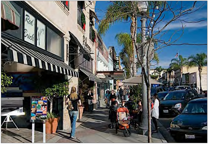 Maintain a small town character. Create and implement the scale of a small town environment through two (2) to three (3) story building heights, detailed building façade requirements along public streets; and building scale and material standards that are compatible with buildings identified as historic landmarks or culturally significant sites in Saticoy.