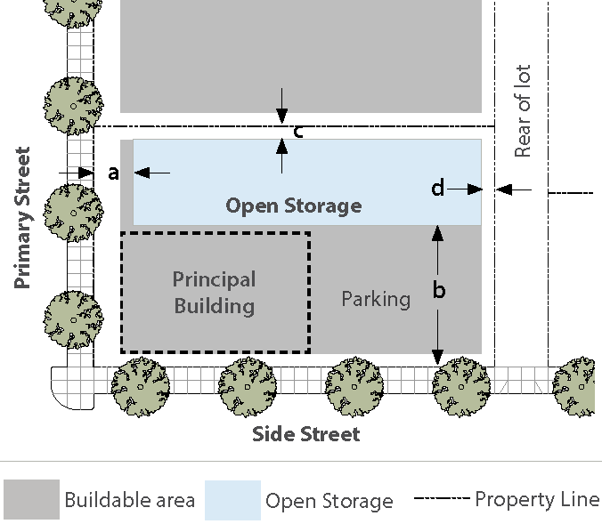 Open Storage in RES, R/MU and TC zones.