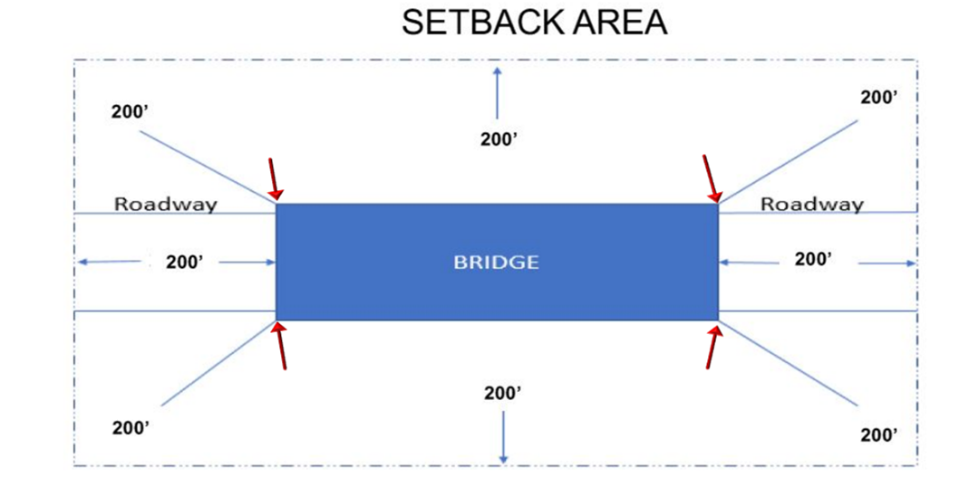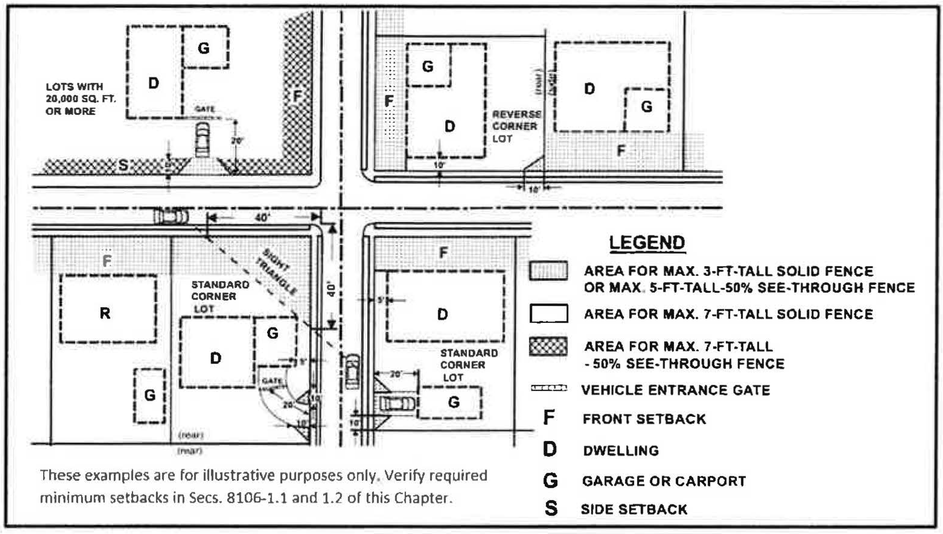 1. Exceptions to required minimum setback requirements can be found in Sections 8106-5 and 8106-6. For minimum setbacks for flag and irregularly shaped lots see Section 8106-4.3.