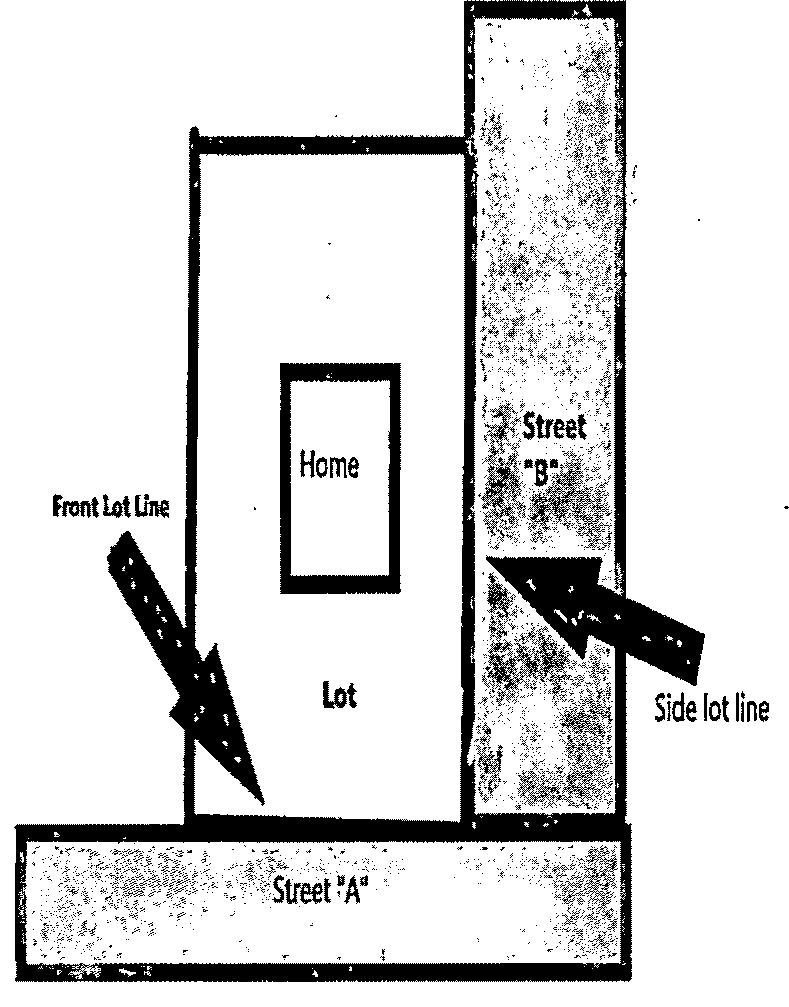 Side Lot line. The lot lines running perpendicular to and between the front and rear lots lines. When a lot has roadways parallel to both the front and side lot lines, the longer of the front or side lot line shall be designated the side lot line for setback purposes.