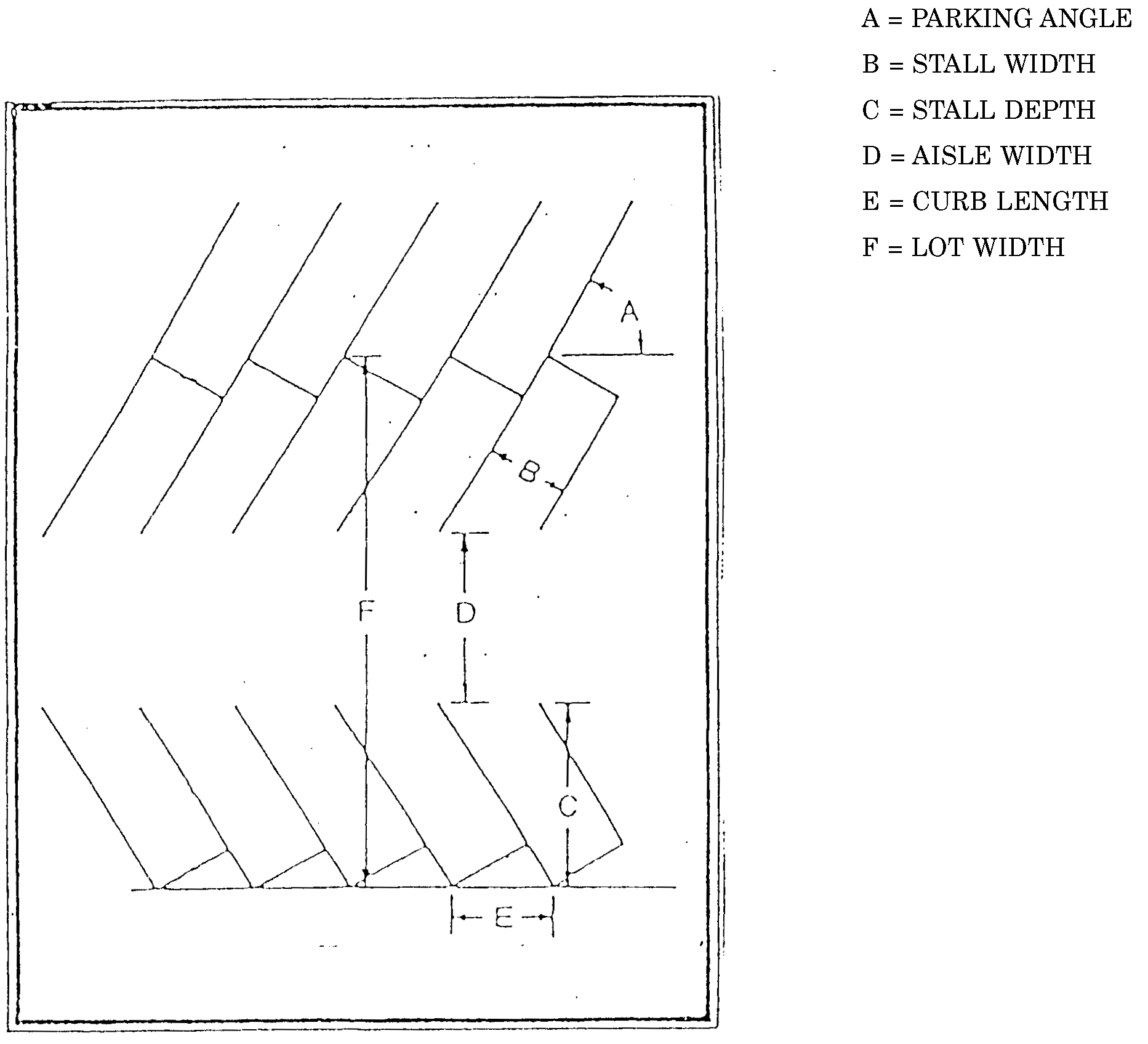 Standard and compact parking spaces shall be sized according to Table 5.02.07-A and as shown by the accompanying illustration.