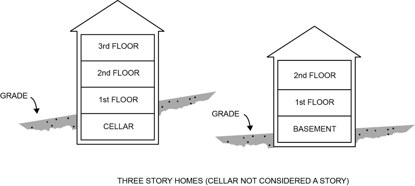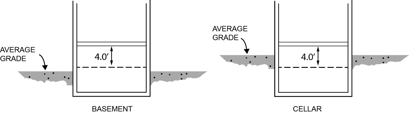 Cellar. A story, partly or completely underground, having less than four feet of its clear height above the average grade of the adjacent ground.