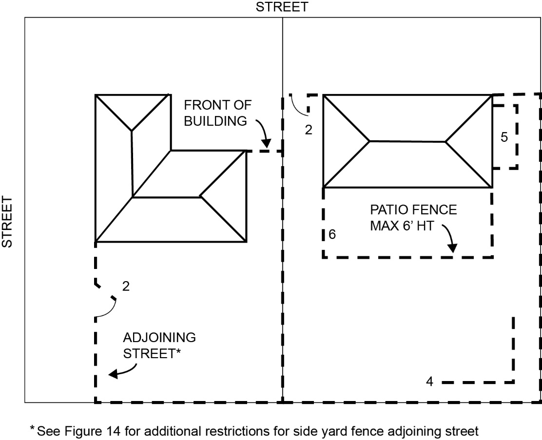 FIGURE 14. RESIDENTIAL FENCE LOCATIONS (SIDE YARD ADJOINING A STREET)