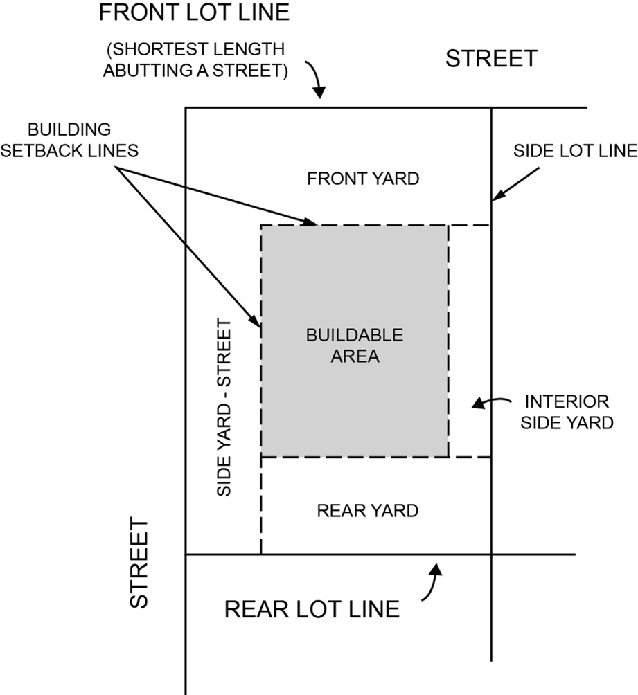 FIGURE 2. SETBACKS AND YARDS - CORNER LOT