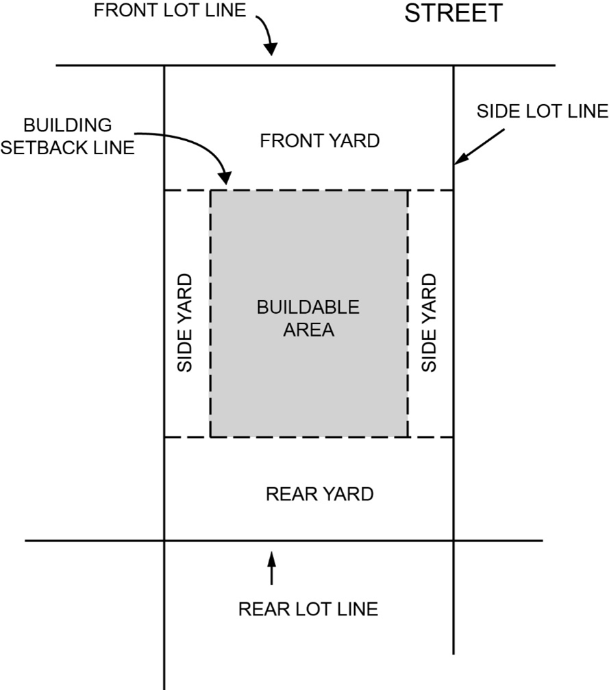 FIGURE 3. SETBACKS AND YARDS - INTERIOR LOT