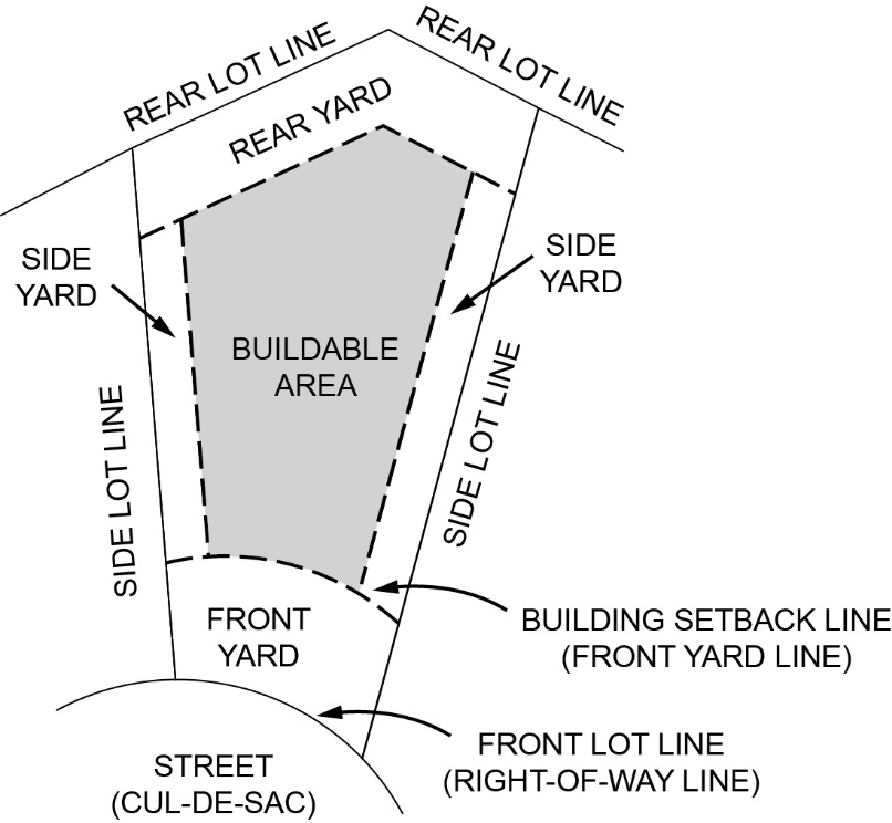 FIGURE 4. SETBACKS AND YARDS - IRREGULAR LOT