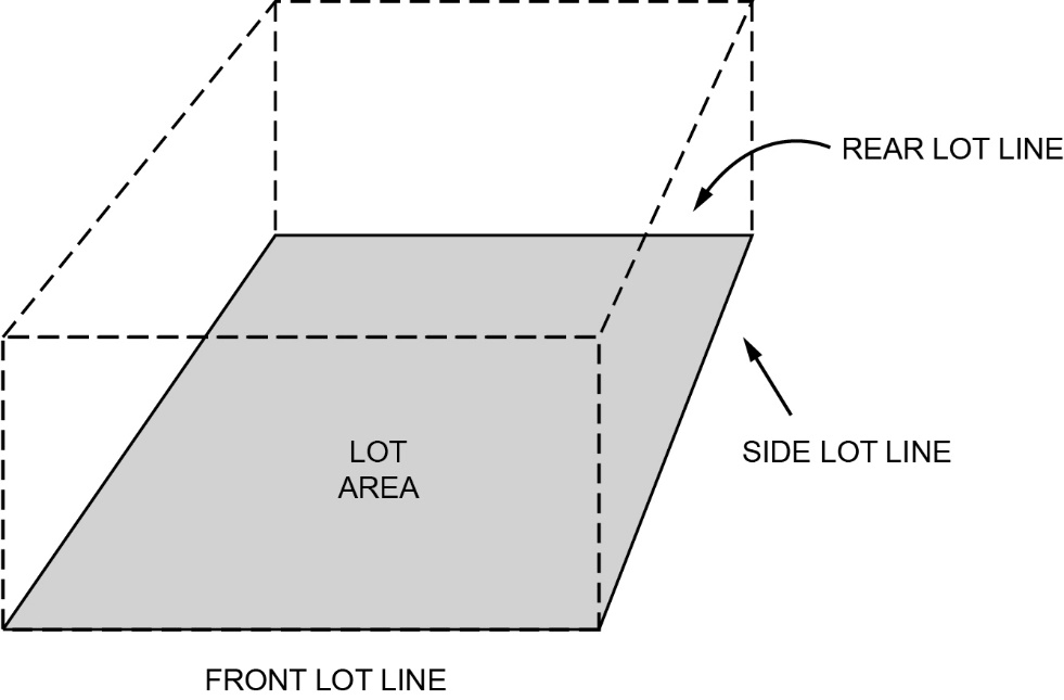 Lot area. The area of a horizontal plane bounded by the vertical planes through front, side and rear lot lines.