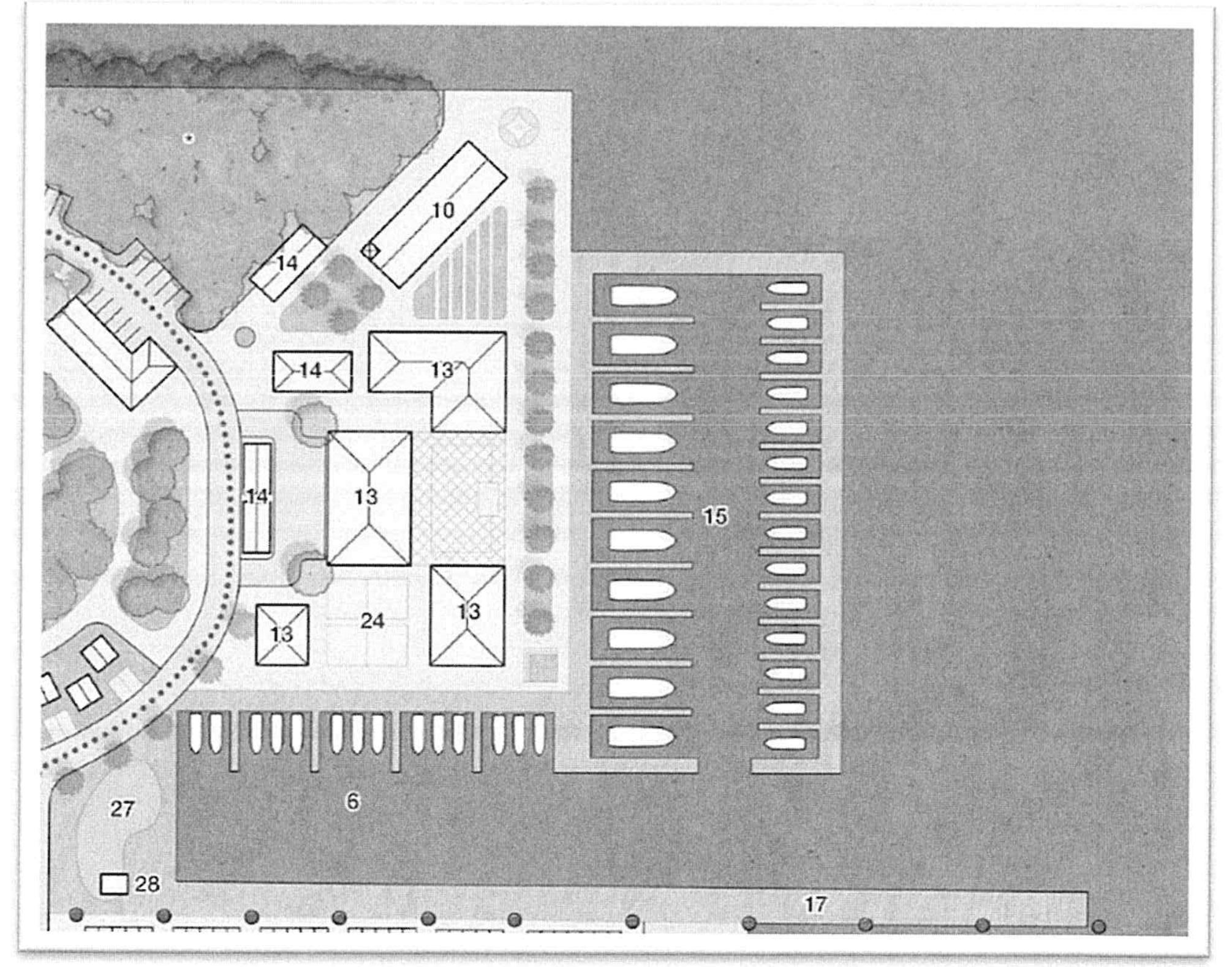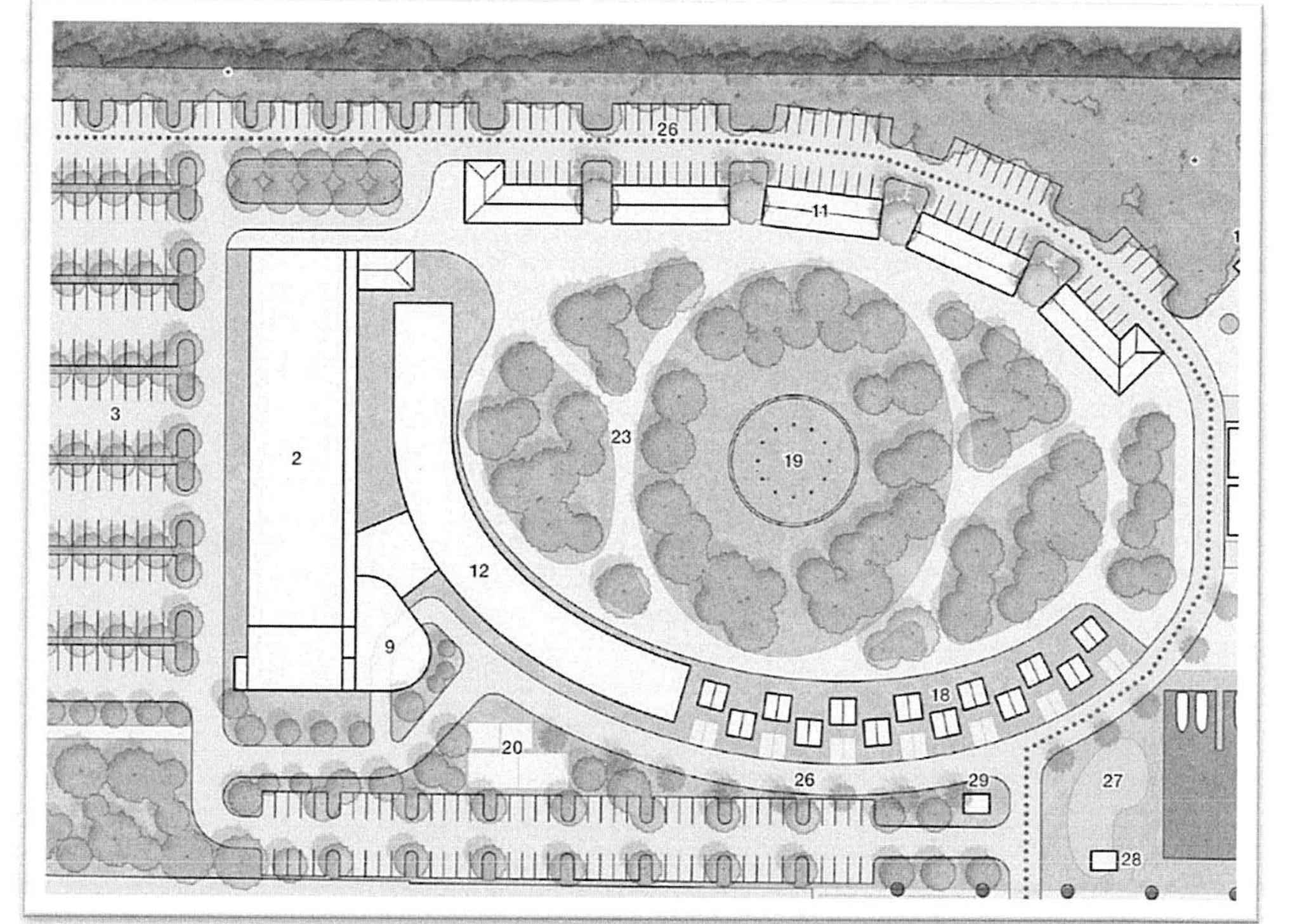 No structures, including buildings or parking areas may encroach into the landscape buffer area.