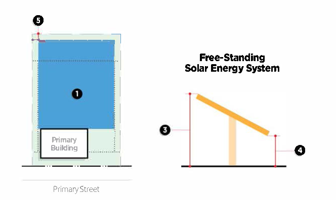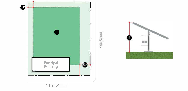 Ground mounted solar energy collection systems shall be permitted in to the rear of the principal building.