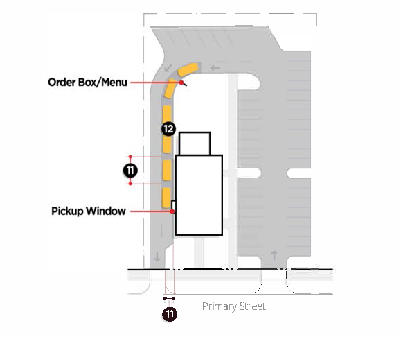 In a portion of the parking lot, which shall not exceed twenty (20) percent of the parking spaces required for the operation of the primary use.