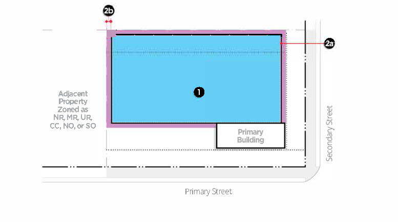 A solid wall constructed from materials identical to those used on the exterior of the primary building and not less than six (6) feet and not more than eight (8) feet in height shall be erected to screen those portions of permanent outdoor activity and operations areas visible from an existing or proposed arterial roadway or a property zoned NR, MR, UR, CC, NO, or SO.