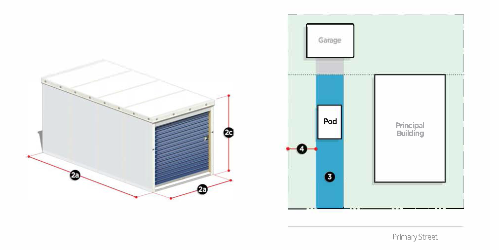 The temporary portable outdoor storage unit cannot encroach on City property, City right-of-way, neighboring property, sidewalk, or be placed in the street. The unit must be sited on asphalt, concrete, or hard paved surface between the front property line and the rear building line of the principal building.