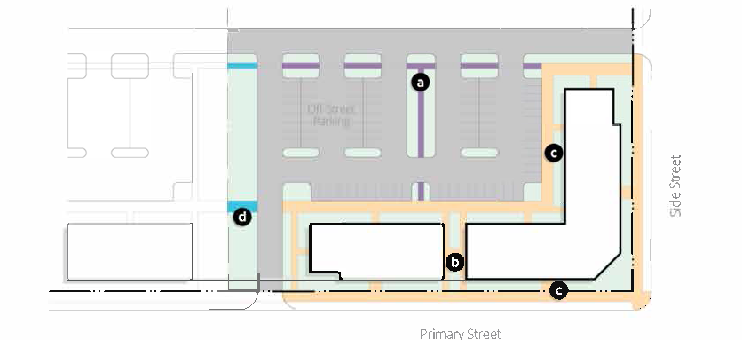 All off-street parking and loading shall be located on the side or rear of the primary building.